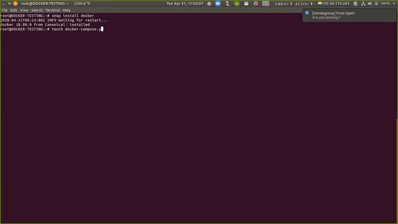 - Copy/Paste the docker-compose.yml content and press CTRL+O to save the file. To check the status of the file, run the following commands: